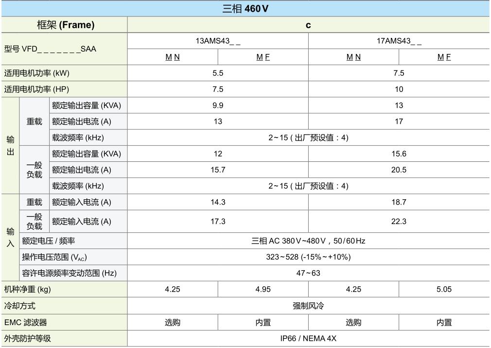 臺達變頻器MS300 0.4KW 三相230V 無內置EMC濾波器