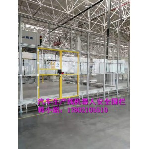 機械防護圍欄是在生產流水線外設立防護措施,局部或全部建立鋁型材防護圍欄,以保證人員和設備安全,部分區域會安裝門或留出通道便于貨物進出和人員檢修。