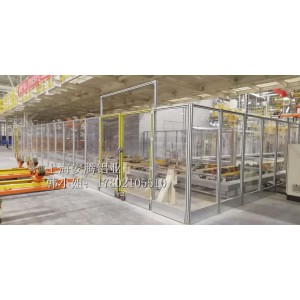 機械防護圍欄是在生產流水線外設立防護措施,局部或全部建立鋁型材防護圍欄,以保證人員和設備安全,部分區域會安裝門或留出通道便于貨物進出和人員檢修。
