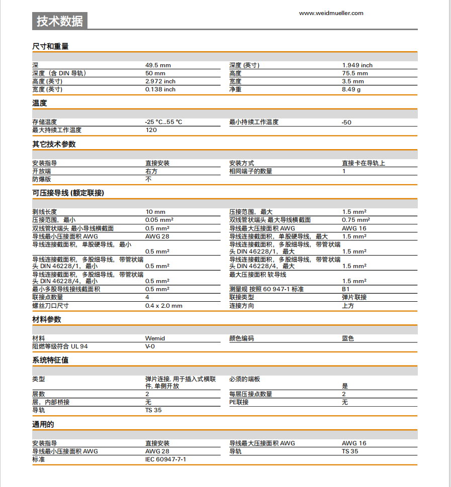 Weidmuller ZDK 1.5 BL 魏德米勒 直通型接線端子 訂貨號(hào)1791110000
