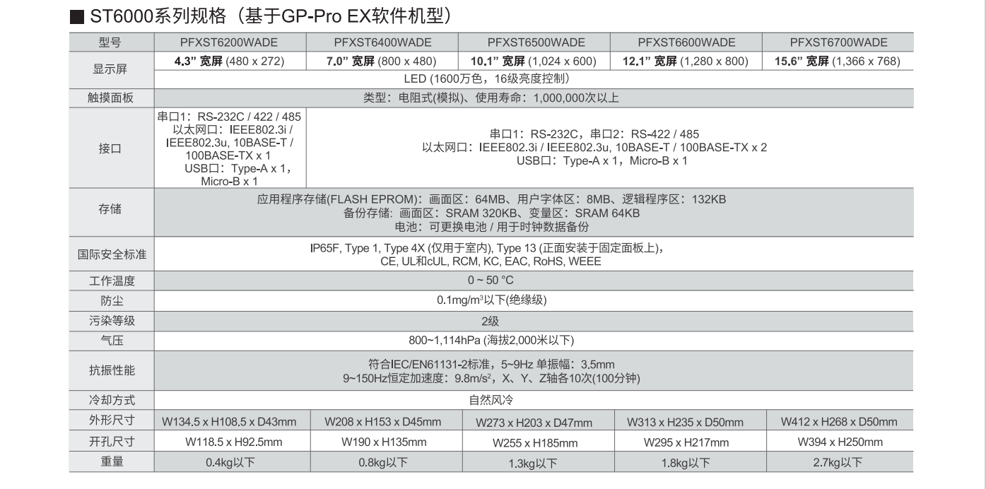ST6000系列基礎(chǔ)級可編程人機(jī)界面。