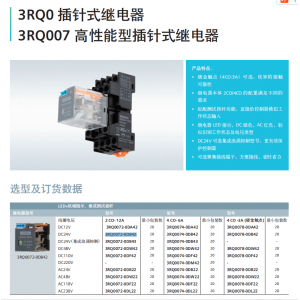 西門子 高性能型插針式繼電器 3RQ0072-0DL22 線圈電壓AC230V