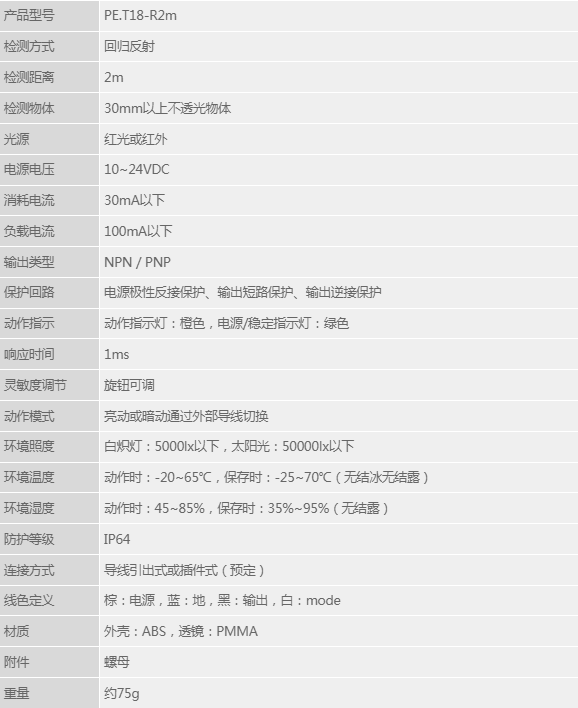 M18帶螺紋鏡頭,雙指示燈自診斷功能,專用IC設計,放大器內置型。