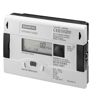 SITRANS FUE950 Custody transfer approved energy calculator, for use with flow meters of type FUS380, FUE380, MAG 8000, FS220 and MAG 5000/6000 transmitter. Suitable for thermal energy measurement of liquids for applications in district heating and chiller plants. - Pulse value 2.5 L/Pulse, max. flow rate 900 m3/h (with option L05: 2.5 gal/p., max. flow rate 15000 GPM). For combined heating/cooling, Flowmeter placed at hot temperture (MID conform for heating). Without sensor, Set-up: PT500 No thermowells included. Power supply Mains powered with 230 VAC module (incl. back-up battery). Module 1 M-Bus. MWh, kW, m3, m3/h - 1 digit resolution. Calculator variant for China according to EU type approval Suitable for billing of heat quantities (also combined) if national approvals exist. Not for use in Europe.