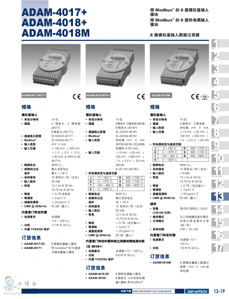 品牌: ADVANTECH/研華               型號(hào):ADAM-4017+8            類型:8路模擬量輸入模塊