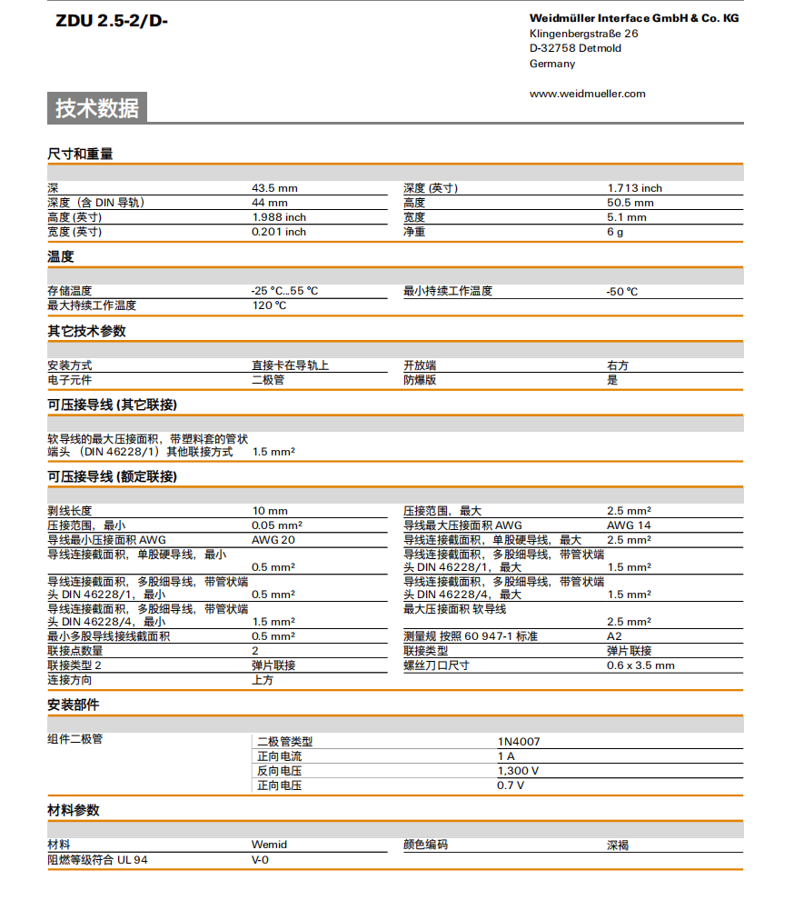 魏德米勒 ZDU 2.5-2/D- 直通型接線端子 訂貨號1779000000