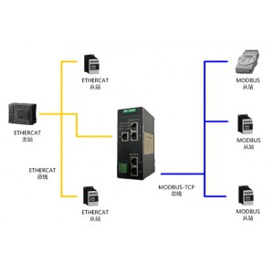 HT3S-ECS-MTP網關連接到EtherCAT總線中作為從站使用,連接到MODBUS-TCP總線中作為主站或從站使用。