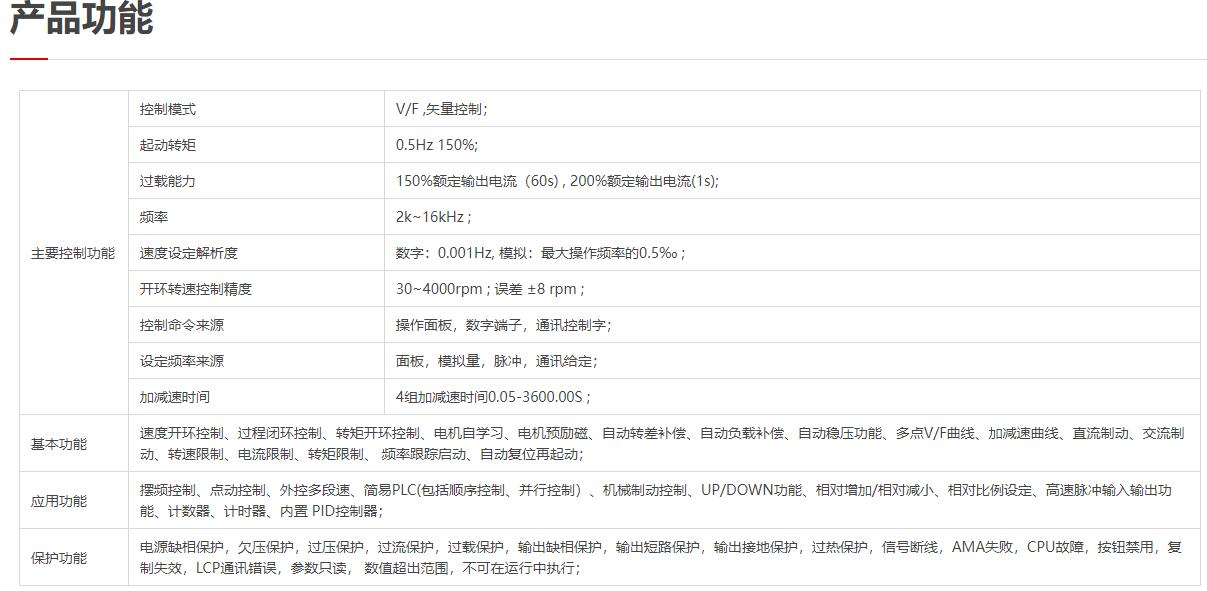高環境適應性:獨立風道設計;PCBA *** 涂層覆蓋率;寬散熱器齒距設計;風機易更換清理設計;提供IP5x選件;寬電壓范圍設計;適應性中國用戶的EMC特性;REI開關設計。