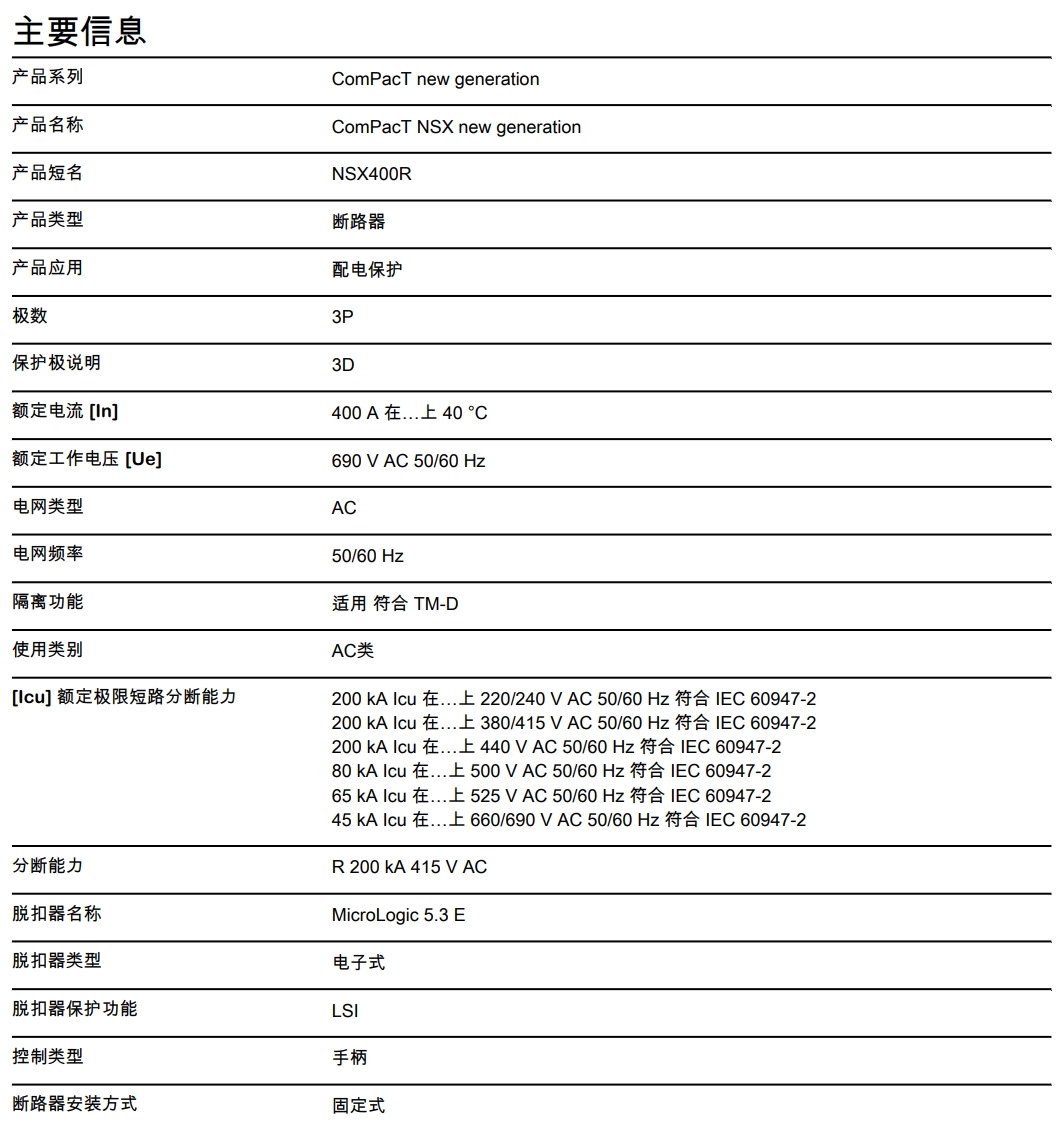 型號:NSX400R 200kA AC 3P3D 400A 5.3E