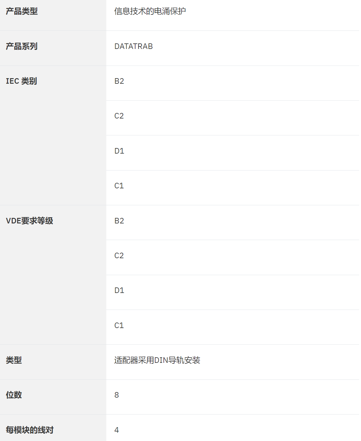 數據網絡的電涌保護***高1 Gbps�?捎糜谝蕴W、以太網供電(PoE、模式A和模式B)、令牌環、ISDN和DS1中。RJ45保護插頭帶單獨的接地電纜和NS 35 DIN導軌卡接支腳。