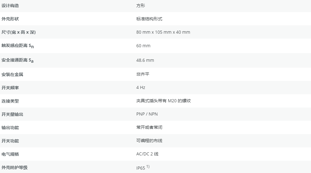 SICK/西克 接近傳感器 IQ80-60NUP-KK0 方形 帶插頭 AC/DC 2線
