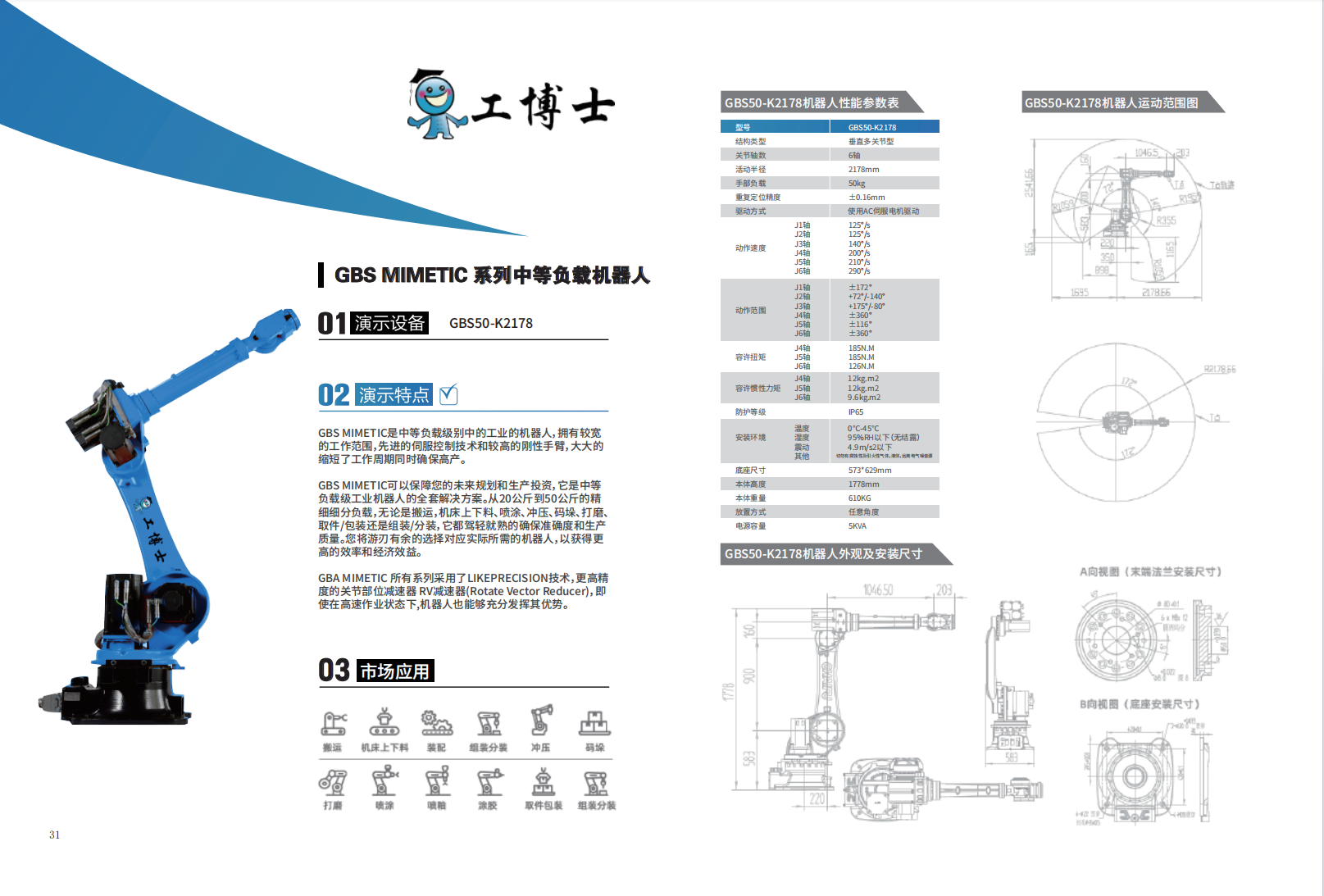 工博士GBS MIMETIC 系列中等負載機器人GBS30-C1850