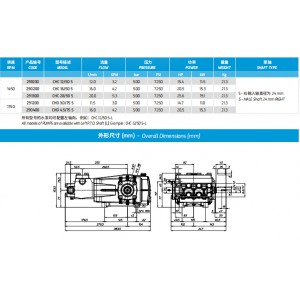 型號描述:CHC 16/50 S 產(chǎn)品編號:290200 流量:16.0L/min 4.2GPM 壓力:500bar 7250psi 功率:15.3kw 重量21.3kg 轉(zhuǎn)速:1450泵軸:R-右輸入軸直徑為24mm