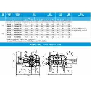 型號描述:PENTA-B 21/600 R 產品編號:790001 流量:NOM 22.1L/min 5.8GPM 丨21.0L/min 5.5GPM 壓力:600bar 8700psi 功率:24.1kw 重量44.6kg 轉速:1000 泵軸:R-右輸入軸直徑為35mm