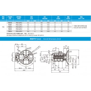 型號描述:PSC 06/15S 產品編號:270600 流量:5.7/min 1.5GPM 壓力:150bar 2175psi 功率:2.2HP 1.6kw 重量6.1kg 轉速:1450 右輸入軸為24mm