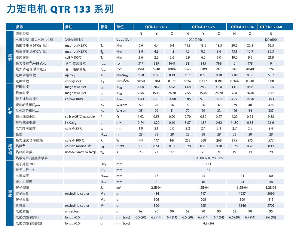 QTR 133是中型號QTR電機的第二款機型。它涵蓋了從2.6到21.9Nm的轉矩范圍。 高度為60mm的***大型號QTR 133-60電機可提供35.3Nm的峰值轉矩。