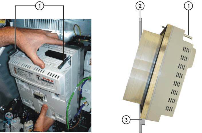5. 將新的 KPP 插進(jìn)殼體支撐角鐵(3)里,然后將其上部掛入角鐵并擰緊